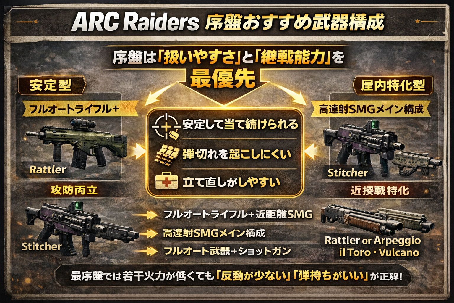 結論|ARC Raiders序盤は「扱いやすさ」と「継戦能力」を最優先すべき